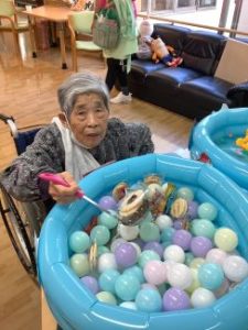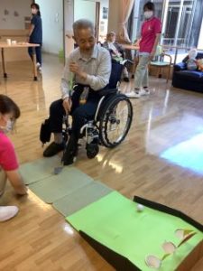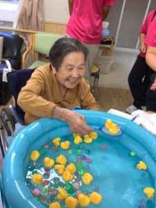 2025年10月10日 ブログ 9月行事 夏祭り(花星ユニット) 夏祭り~花星ユニット~ コロナ前は盛大に行っていた夏祭り! 今年は小規模で復活しました! 花星ユニットではスーパーボールすくいと、パターゴルフをしました♪ 平日開催だった為、来られないご家族様もいらっしゃいましたが、利用者様からは「楽しかったね」「美味しい物たくさん食べたよ」と笑顔が見られ、職員も一緒に楽しむ事ができました( *´艸`) 来年はコロナ前のように外で花火も打ち上げられるといいなと願いながら、今後も楽しい行事を開催していけるように、職員一同頑張って行きます(^^)/ 来苑してくださったご家族様、ありがとうございました!