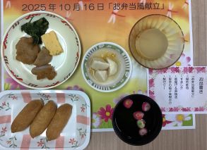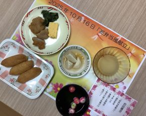 10月の行事食と致しまして稲荷ずし、唐揚げ、玉子焼きなど『お弁当風献立』を提供させていただきました。