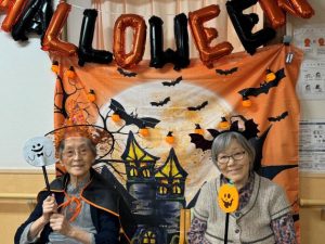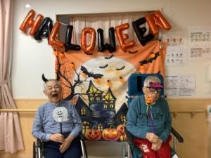 2025年10月31日 ブログ 10月行事 ハロウィーンパーティー(花星ユニット) 【花星ユニット】ハッピーハロウィン★ 花星ユニットではハロウィンイベントを開催しました! 仮装をして、写真撮影✨ 衣装が気に入り、ノリノリで撮影された利用者様もいらっしゃいました♪ 撮影後は、ハロウィンの曲でダンスをしたり、トリックオアトリートで好きなお菓子を貰ったり、皆様楽しまれていました☺ 来月は焼き芋パーティーです