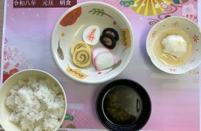 2026年01月15日 ブログ 1月 行事食 栄養士コメント 元旦の朝食に「おせち料理」にやわらか素材を使用し、 昼食に伊達巻、おやつに紅白饅頭、夕食に黒豆を提供させて頂きました。 本年も宜しくお願い致します。