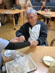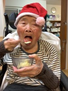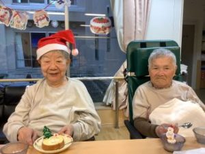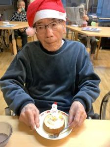 2026年01月15日 ブログ 12月行事 クリスマス会 (川虹ユニット) クリスマス会 今月のユニット行事では、クリスマス会を行いました。職員がデコレーションしたケーキを利用者様がおいしそうに召し上がっていました。 その後、クリスマスプレゼントの代わりに、職員がハンドクリームで手のスキンケアを行いました。