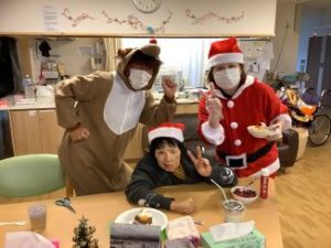 2026年01月15日 ブログ 12月行事 クリスマスケーキを作ろう(風ユニット) 12月クリスマスケーキを作ろう★ だんだん寒くなってきたと思っていたらもう12月に入りました。 12月後半にお誕生日会があるので早めのクリスマスイベント開催しました。 みんなでケーキをデコレーションして、サンタやトナカイに変装した職員と楽しく過ごしました。 行事が多いと皆さん喜んで頂けるので私達もやりがいを感じています。 今回はたまに利用される利用者様もいらっしゃり大勢で盛り上がりました。