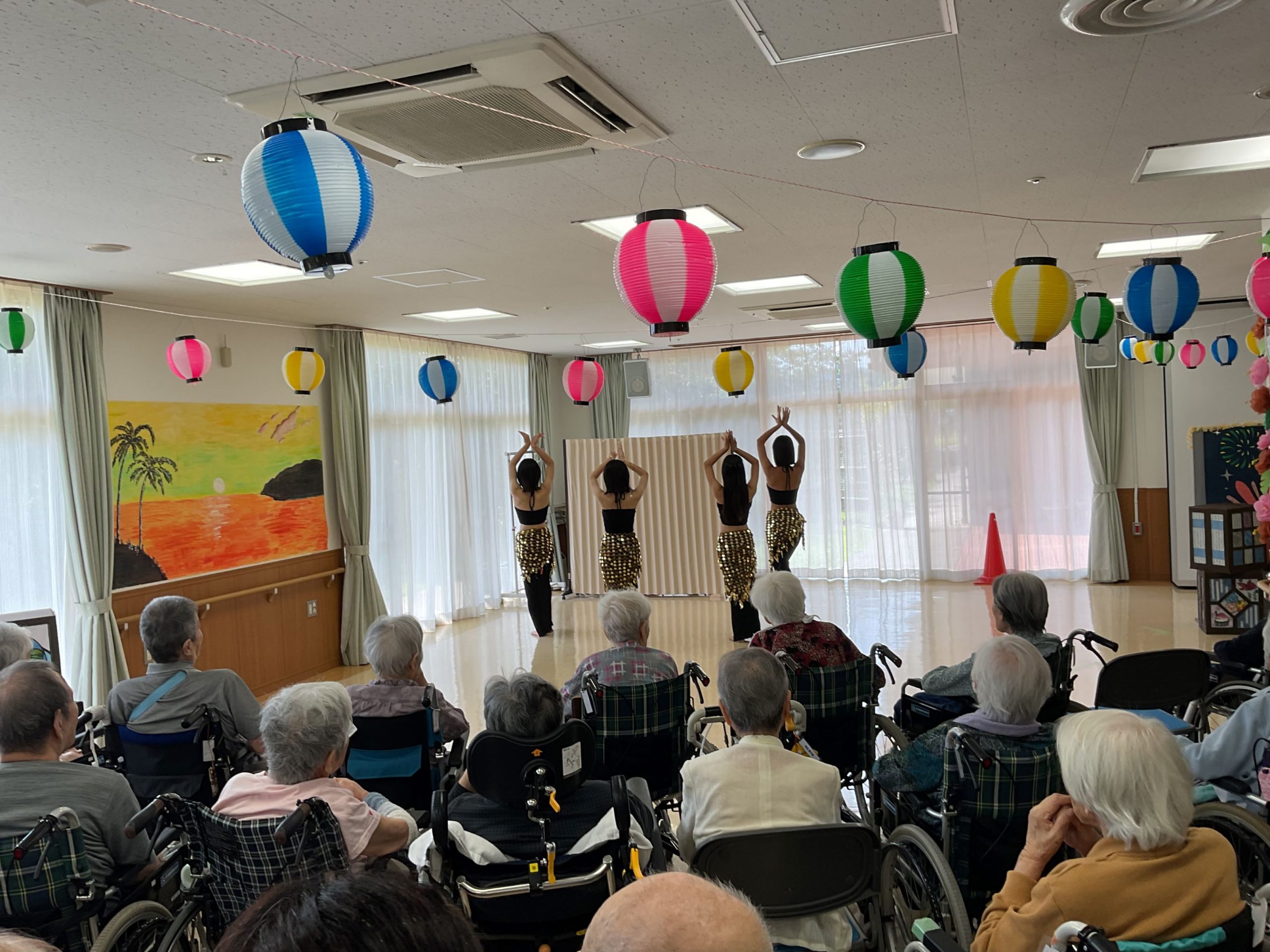 2025年09月19日 ブログ 納涼祭 1日目 2025年8月21日(木) 2日間にわたって、夏祭りを開催しました!! 1日目はVONDS市原の選手とベリーダンス様に来ていただきました!! VONDS市原の選手によるリフティングパフォーマンスです⚽ ベリーダンス様によるダンスパフォーマンスです(^▽^)/ 皆さんのとても楽しまれた様子が見れたので、良かったです♪♪