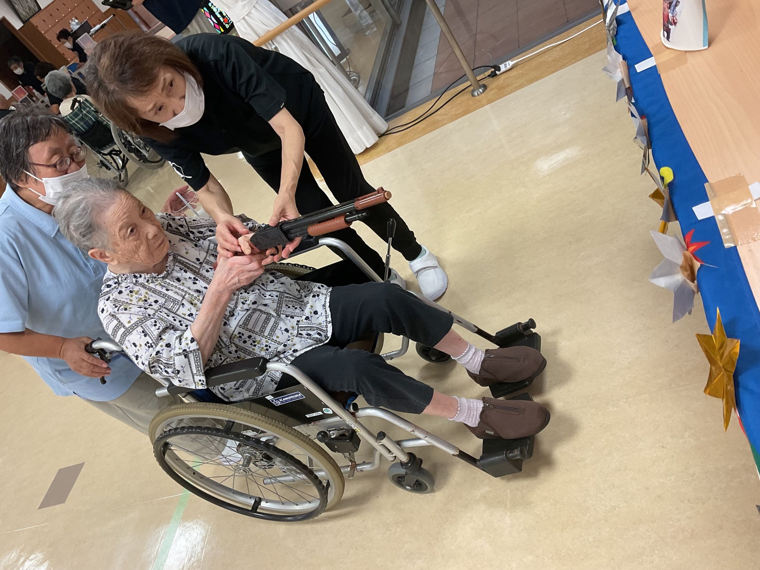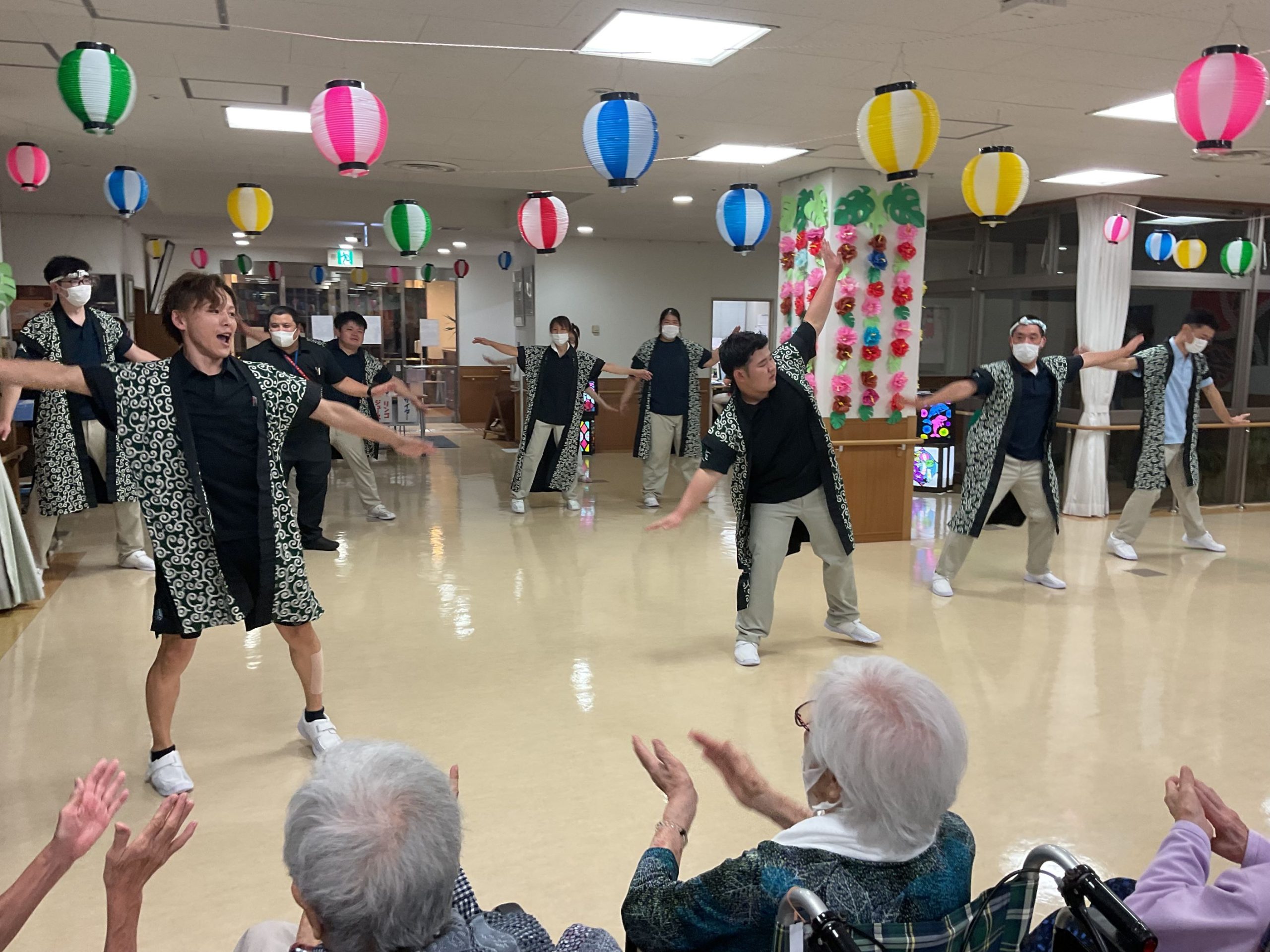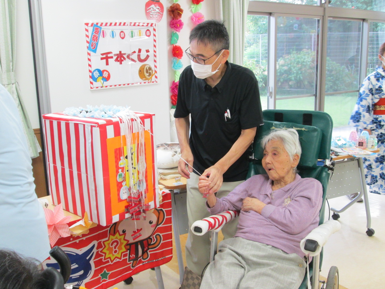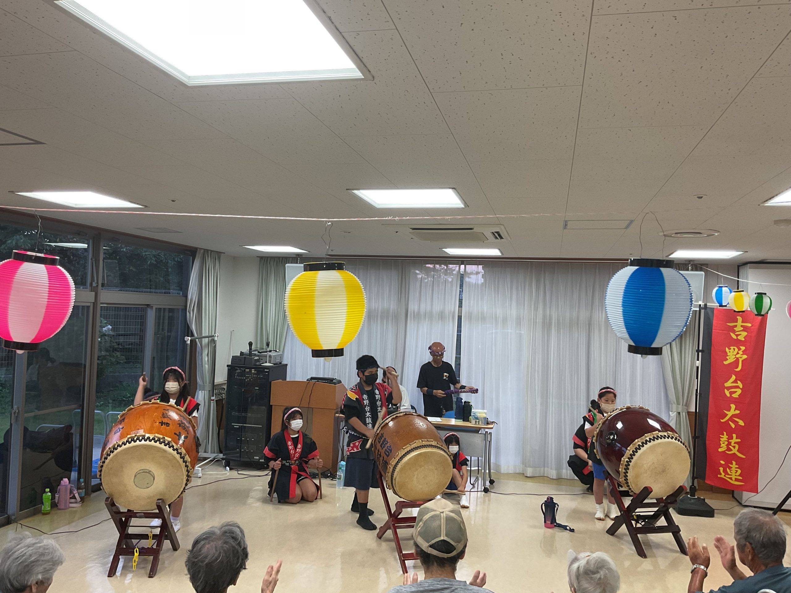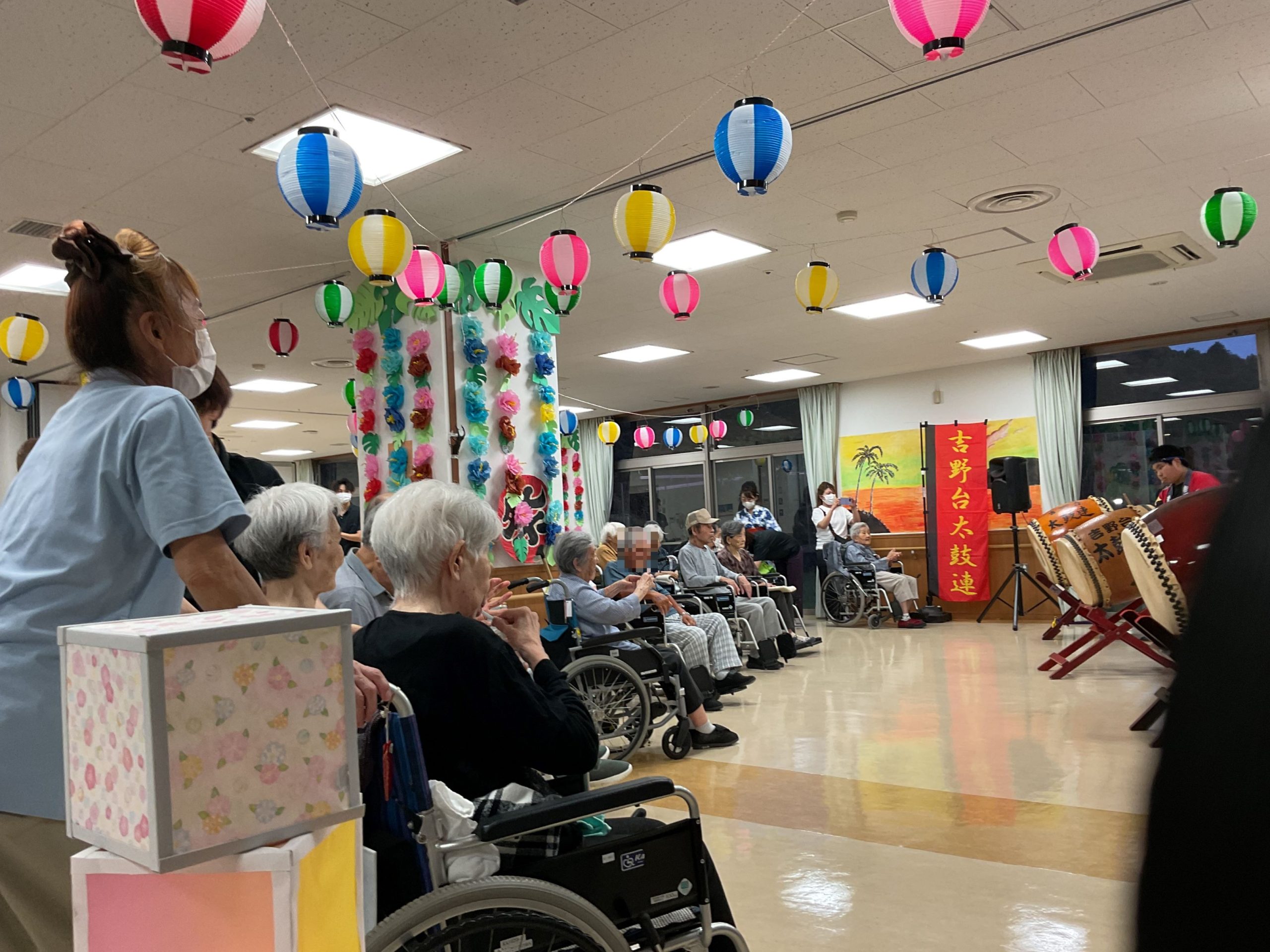 2025年09月19日 ブログ 納涼祭 2日目 2025年8月22日(金) 2日目は、施設内での夏祭りです!! 夜ご飯は行事食として、夏祭りメニューを提供させていただきました! ゲームコーナーでは千本くじ、射的、ボウリングがあり、皆さんとても楽しまれていました♪♪ 吉野大太鼓連様に来ていただき、夏祭りの雰囲気を大いに感じることができました!! 職員によるソーラン節も披露し、夏祭り2日目もとても充実した1日となりました(o^―^o)ニコ