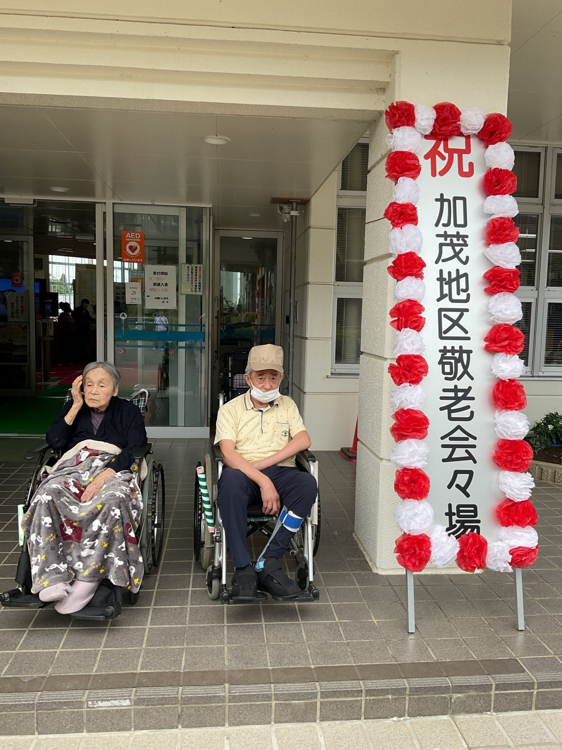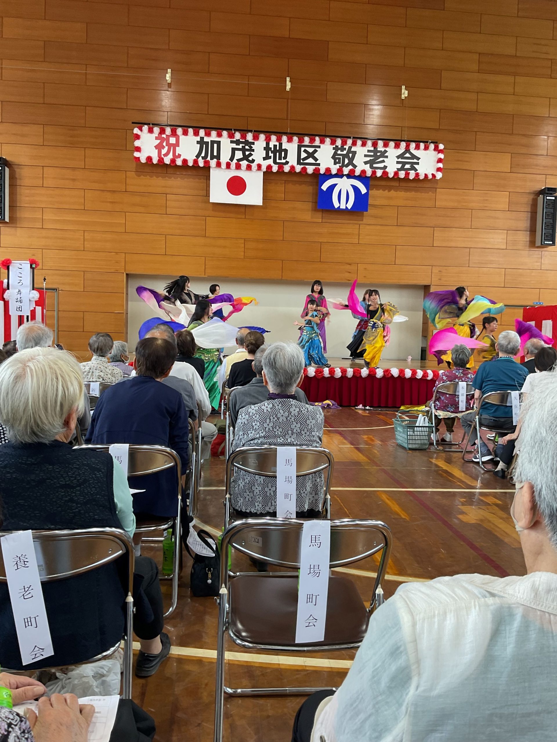 2025年10月21日 ブログ 加茂地区敬老会 2025年9月28日(日) 加茂地区の敬老会に参加しました! 吟舞やダンスを見たり、子供たちと触れ合ったりと楽しいひと時を過ごしました。 お土産にお弁当を貰い、美味しくいただきました(o^―^o)ニコ