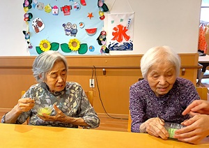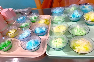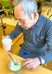 2025年08月28日 ブログ 8月 かき氷(海森) まだまだ暑い8月 ‼ 皆さんでかき氷を楽しみクールダウンしました ☀ 「あらあら、冷たいね!」 連日の猛暑日…まだまだ夏は続きそうです(;´Д`A “`