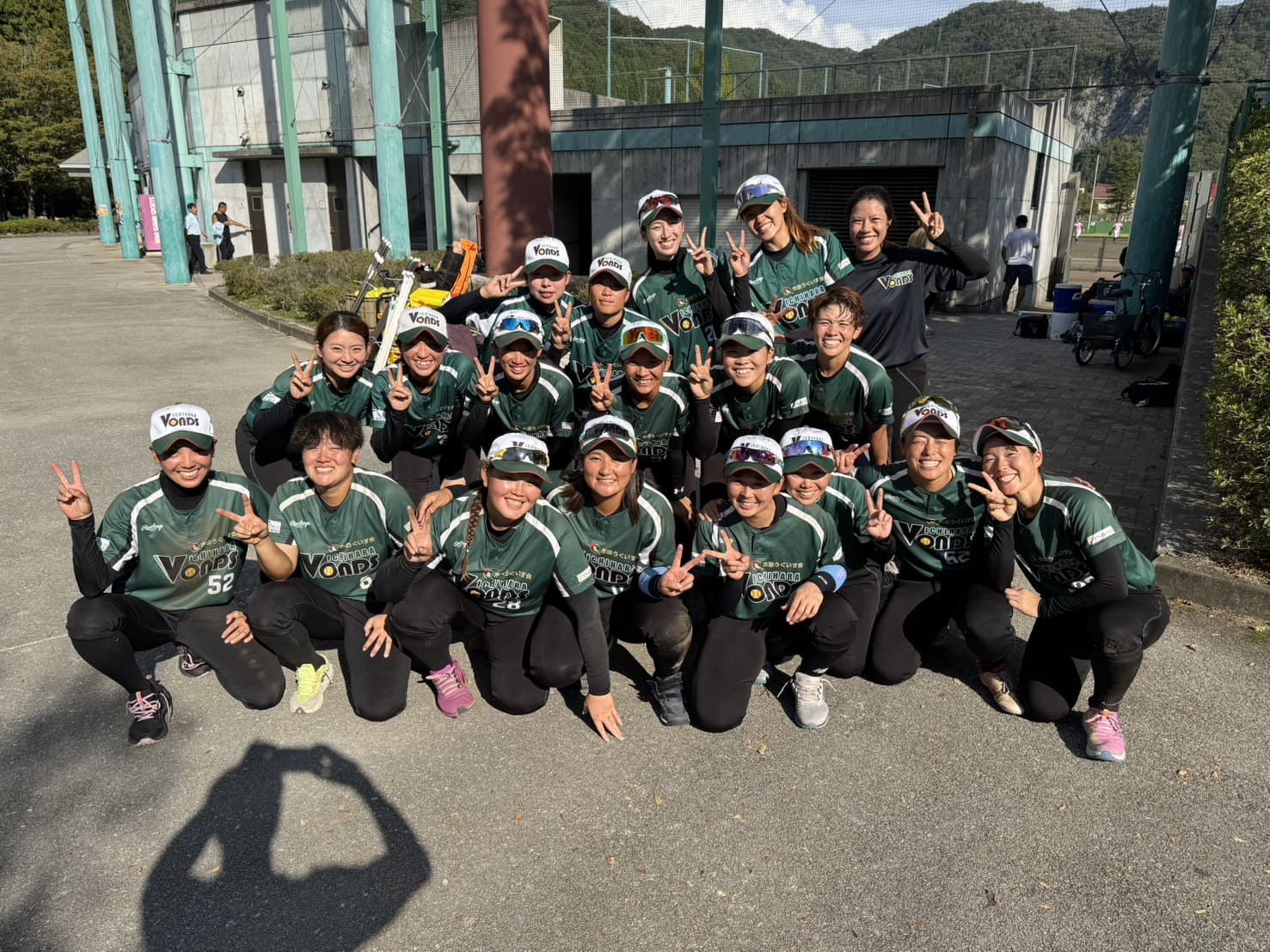 2025年10月17日 お知らせ 【試合結果】日本女子ソフトボールリーグ第四節(岡山大会) 日頃よりVONDS 市原への暖かいご声援ありがとうございます。 10/10(金)、11(土)、12(日)に行われた【日本女子ソフトボールリーグ第四節(岡山大会)】 の試合結果をお知らせいたします。 試合結果 ■試合日時 10/10(金) vs 平林金属peachblossoms 12:30プレイボール 10/11(土) vs 小泉病院BlueArrow 15:00プレイボール 10/12(日) vsペヤング 12:30プレイボール ■会場 憩いとふれあいの公園ピオーネ球場(〒718-0013 岡山県新見市正田330) ■スコア 《VS平林金属》 平林金属 0 0 2 0 0 0 1 3 VONDS 3 0 2 0 0 3 x 8 [バッテリー]渡邉双葉、西音華-渋江マリン [打撃記録](本)吉田優月、吉田汐里(二)渋江マリン、吉田優月 日本リーグ公式HP 試合詳細 《VS 小泉病院BlueArrow》 VONDS 3 0 0 0 1 0 1 5 小泉病院 0 0 0 0 0 0 1 1 [バッテリー]渡邉双葉-渋江マリン [打撃記録](本)小野寺萌(二)小野寺萌、塚本楓花、紺野穂乃花 日本リーグ公式HP 試合詳細 《VS ペヤング》 VONDS 0 0 0 2 0 0 6 8 ペヤング 0 1 0 1 0 0 0 2 [バッテリー]西音華、渡邉双葉-渋江マリン [打撃記録](本)島田彩那(三)渋江マリン(二)吉田優月、島田彩那、小野寺萌、紺野穂乃花 日本リーグ公式HP 試合詳細 今節の3連勝により、10/31~鹿児島県で行われる日本リーグ順位決定節の 決勝リーグ進出が決定いたしました。 悲願の優勝へあと一歩!!! 引き続きご声援のほどよろしくお願いいたします。