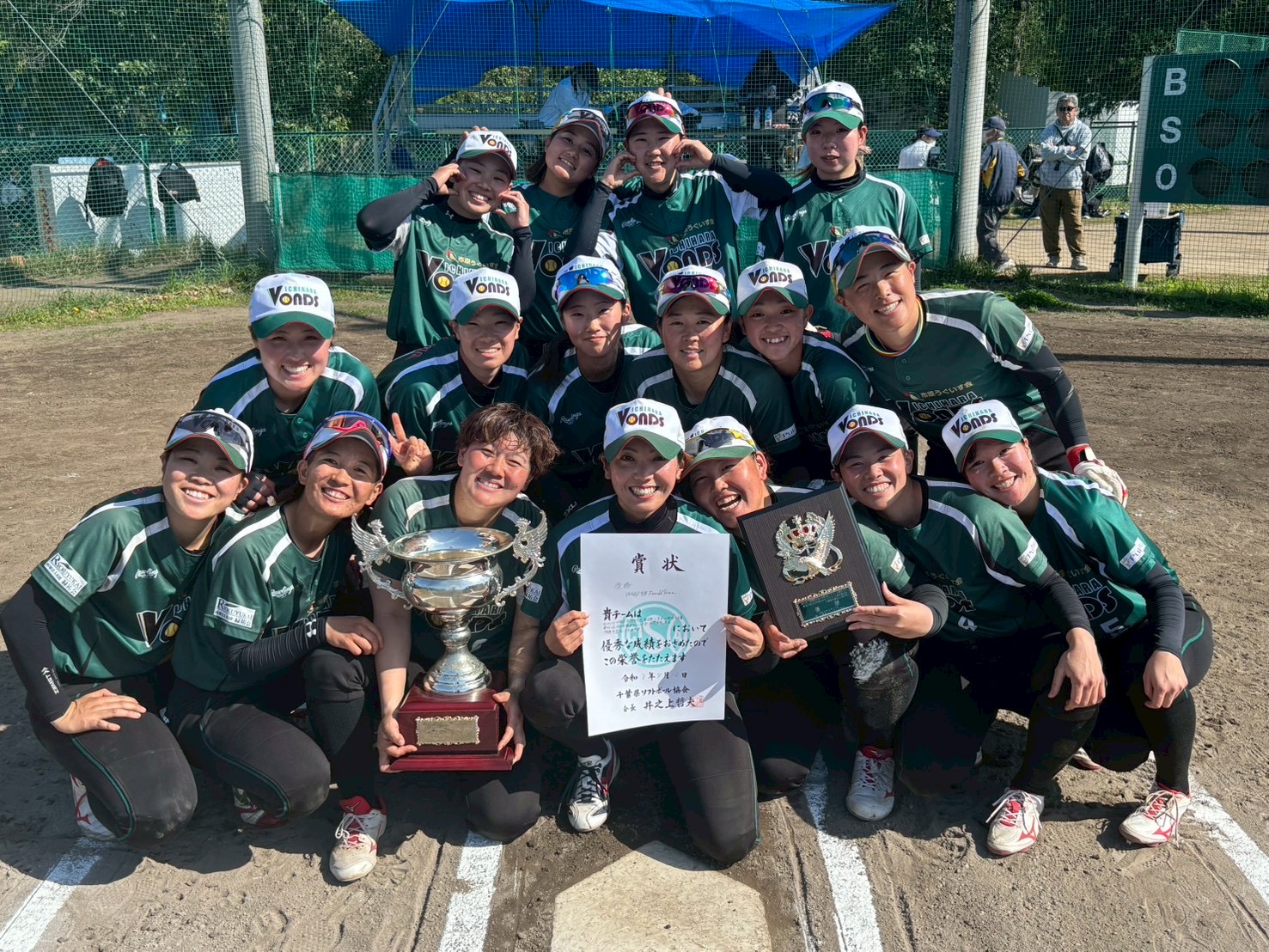 2026年04月15日 お知らせ 【試合結果】全日本総合女子ソフトボール選手権大会県予選 日頃よりVONDS 市原への暖かいご声援ありがとうございます。 4/12(日)に行われた【全日本総合女子ソフトボール選手権大会県予選】 の試合結果をお知らせいたします。 試合結果 ■試合日時 4/12(日)準決勝 vs 清和大学 9:00プレイボール 4/12(日)決勝 vs 順天堂大学 13:00プレイボール ■会場 千葉市総合スポーツセンターソフトボール場(〒 263-0011 千葉県稲毛区天台町323) ■スコア 準決勝《VS清和大学》 清和大学 0000000 0 000006× 6 VONDS市原 [バッテリー]渡邉双葉-渋江マリン [打撃記録](本)塚本楓花(三)鳥居早稀(二)紺野穂乃花 決勝《VS 順天堂大学》 VONDS市原 31030 7 00000 0(5回コールド) 順天堂大学 [バッテリー]渡邉双葉、冨岡真那、平山綾乃-渋江マリン [打撃記録](二)石井麻菜 ご声援ありがとうございました。